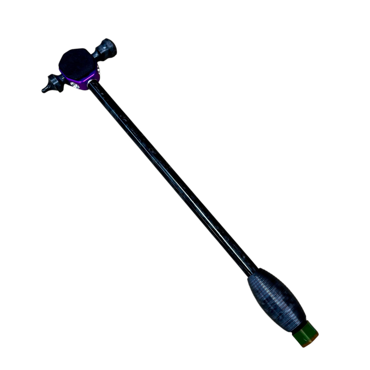 L’Haddle 2.0 è stato completamente ridisegnato con nuove funzionalità . La testa è realizzata in 6061 Billet che è anodizzato viola brillante. La testa accetta un cuscinetto sorprendente su ciascun lato. I grandi cuscinetti sono realizzati in ABS, per una superficie più dura e altri in TPU per una superficie di impatto più morbida. Questi cuscinetti sono rimovibili e intercambiabili. 2 di ogni cuscinetti sono inclusi in modo da poter impostare il tuo Haddle per soddisfare le tue preferenze. La testa ha 4 fori di punta, 2 a un tradizionale 90 gradi, l’altro set è inclinato verso il basso di 15 gradi per il lavoro ferroviario. Le punte incluse sono realizzate con un Nylatron che è un nylon duro e leggero che funziona in modo fantastico come punte di miscelazione! Una punta è una punta con un raggio di 1 pollice, l’altra è una punta con un raggio di 1/4. Un’altra caratteristica è il Knockdown a bordo con tappo in TPU, anch’esso realizzato in Nylatron, che avvita e svita rapidamente dall’interno della maniglia a forma di uovo che si adatta perfettamente alla mano.